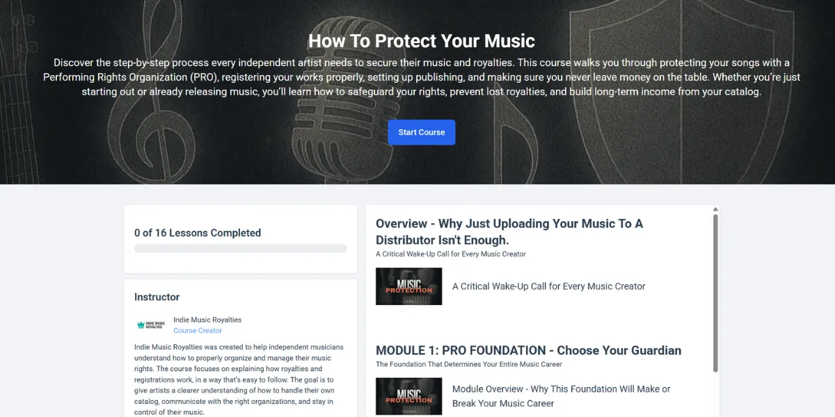 You’ll get everything you need to start learning music protection and royalties